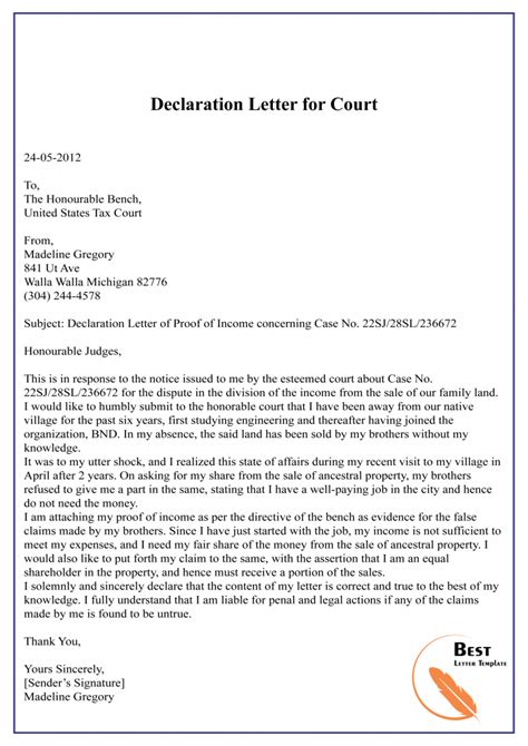 Web to begin, you first need to identify what are the issues that you want decided by the court, for example, new custody orders or a change in the parenting schedule or the lowering of child support. • introduction paragraph (date of marriage, separation, children’s names and ages, and summary of what you are asking for), •. Web to begin, you first need to identify what are the issues that you want decided by the court, for example, new custody orders or a change in the parenting schedule or the lowering of child support. Web below is a general example of how your declaration should flow. Use our sample declaration letter , our downloadable. Web in a family law case, you may need to write a declaration for any of the following reasons: Web declaration letters to the court can be crucial in child custody cases. They can even serve as your testimony if you have a trial by written declaration. To tell “your side of the story” and give a brief background of the situation, if necessary.